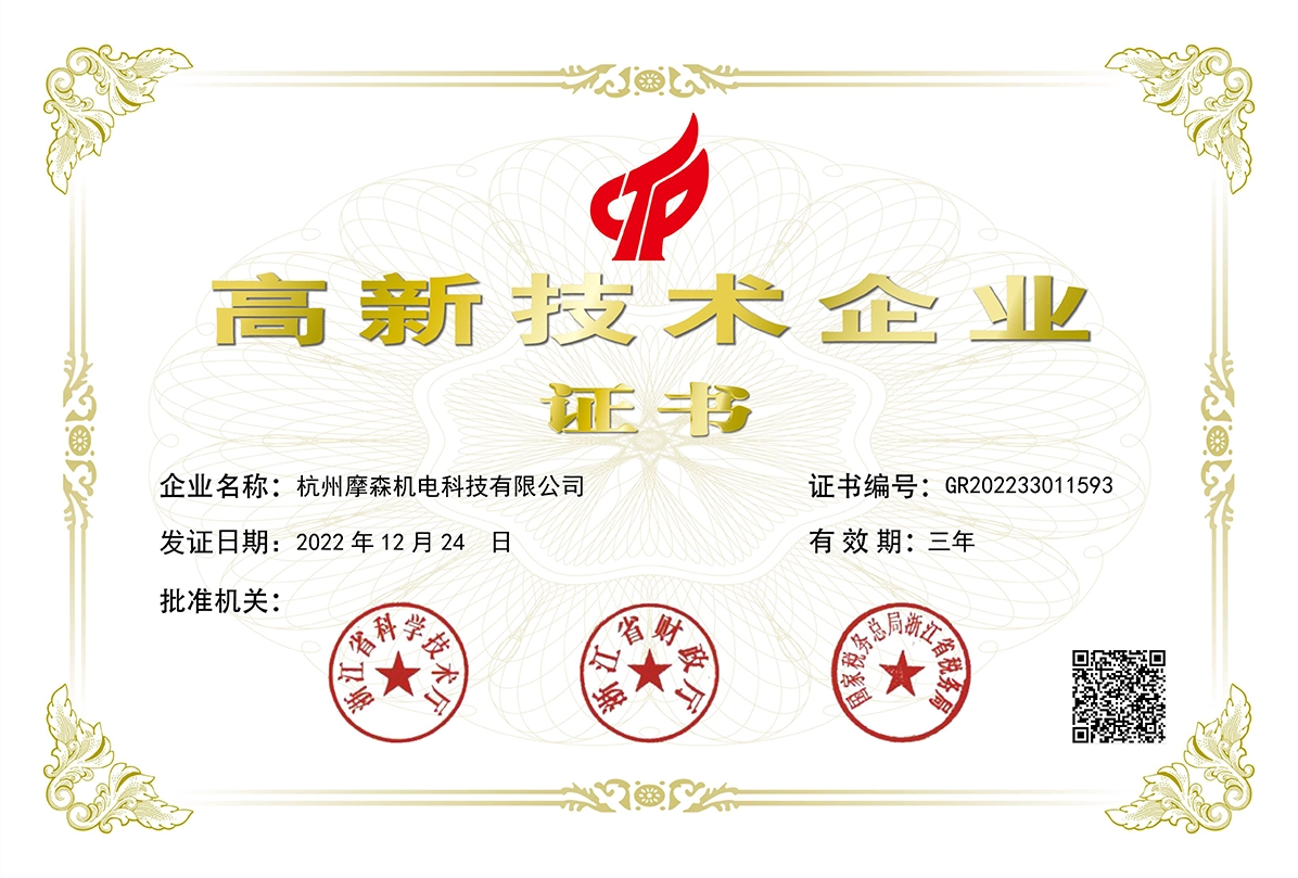 Moson Electromechanical has a long history of research and development in automation technology. Over the years, the company has expanded its research in automation technology and has achieved significant results. In 2022, Hangzhou Moson was recognized as a high-tech enterprise in Hangzhou, Zhejiang Province.